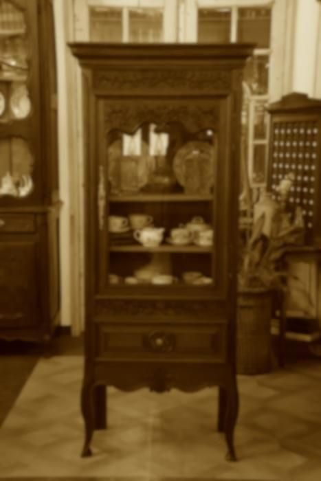 木の実とリーフ彫刻の美しいガラスキャビネット