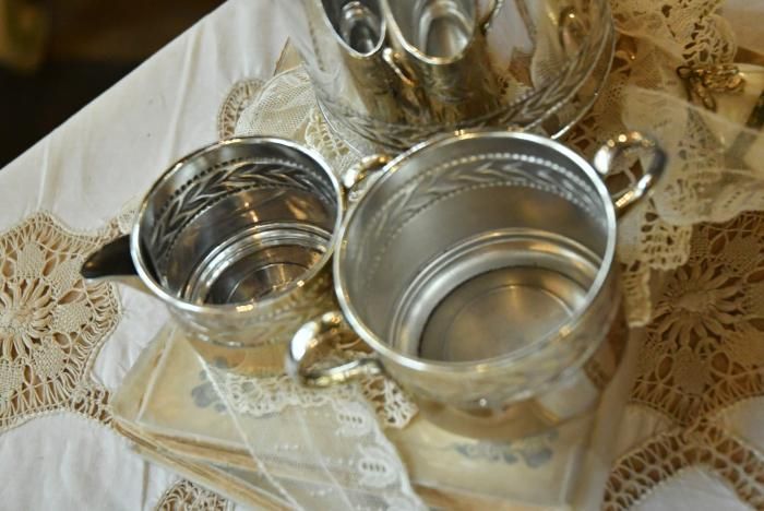 美しいリーフ帯のティーセット ティーポット・シュガーポット・ミルクポット(送料込み)